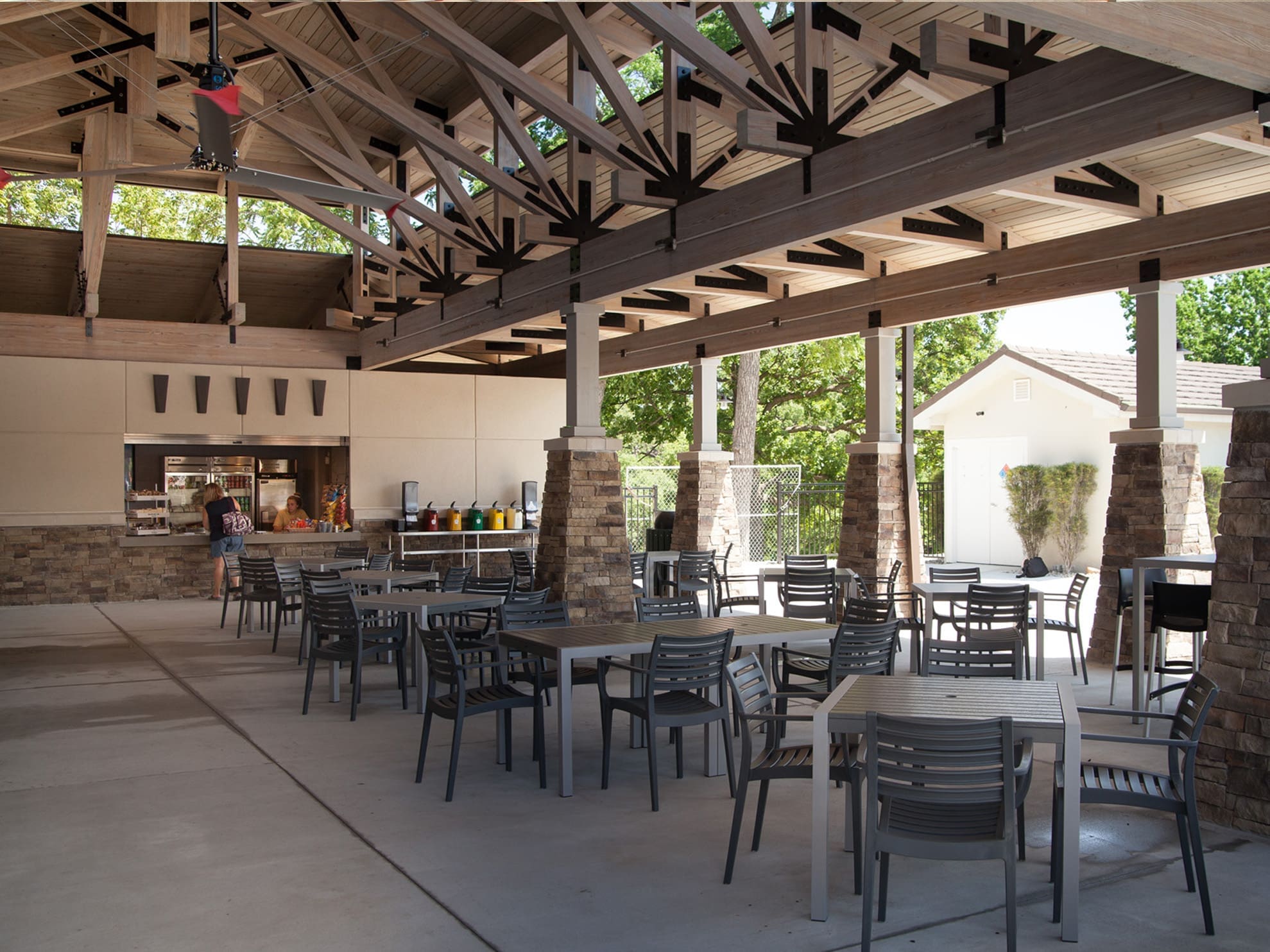 Right off the cart parking area, it is a great spot for your event’s registration, smaller gatherings, etc.